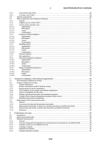 - Testing and conformance: Environmental and test conditions, measurement arrangements for radiated emissions, modulation/test signals, multiple-band testing, and conformance verification procedures.
