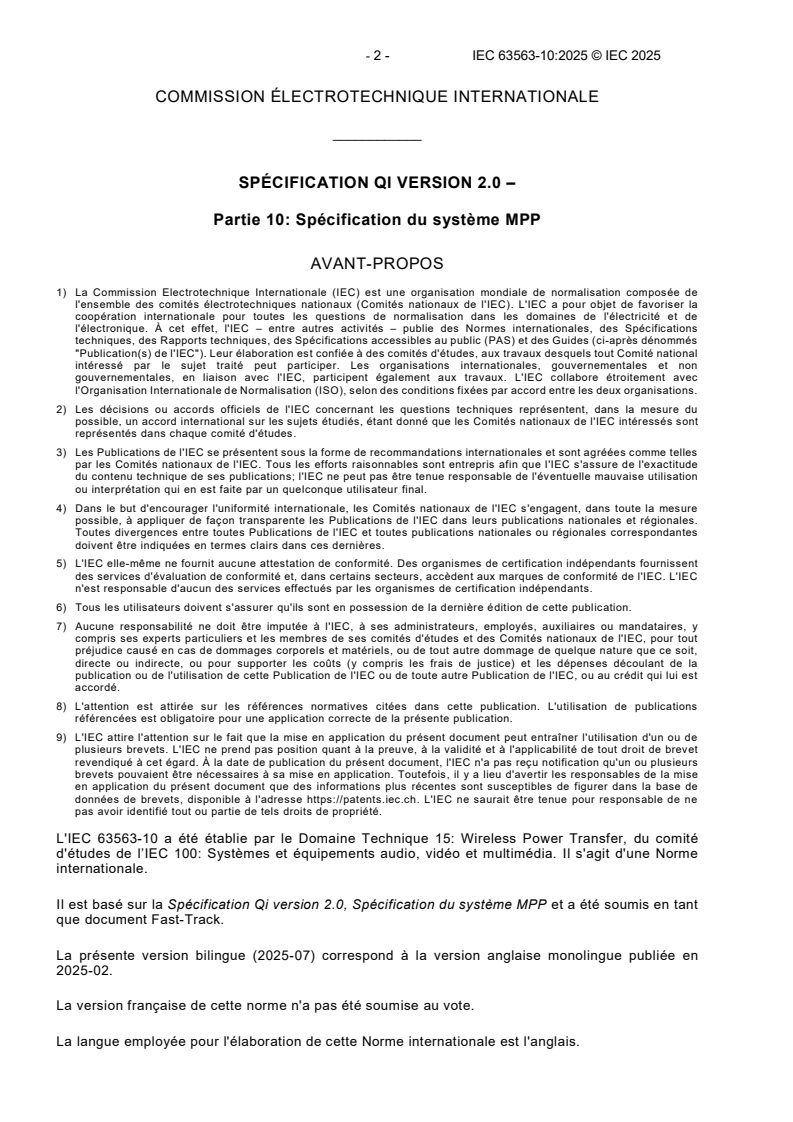 IEC 63563-10:2025 - Spécification Qi version 2.0 - Partie 10 : Spécification du système MPP/10/2025