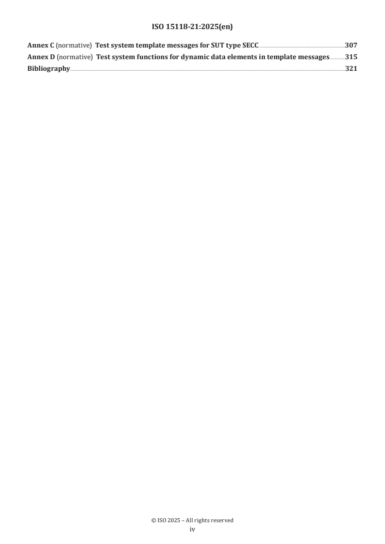 ISO 15118-21:2025 - "Road vehicles - Vehicle to grid communication interface - Part 21" provides a formal conformance test plan (abstract test suite, ATS) for implementations of the vehicle-to-grid (V2G) communication interface defined in ISO 15118-20. Published jointly under the ISO/IEC framework, this document defines the network-layer and application-layer conformance tests for Electric Vehicle Communication Controllers (EVCC) and Supply-Equipment Communication Controllers (SECC) that are common across charging types (AC, DC, ACD, and WPT).