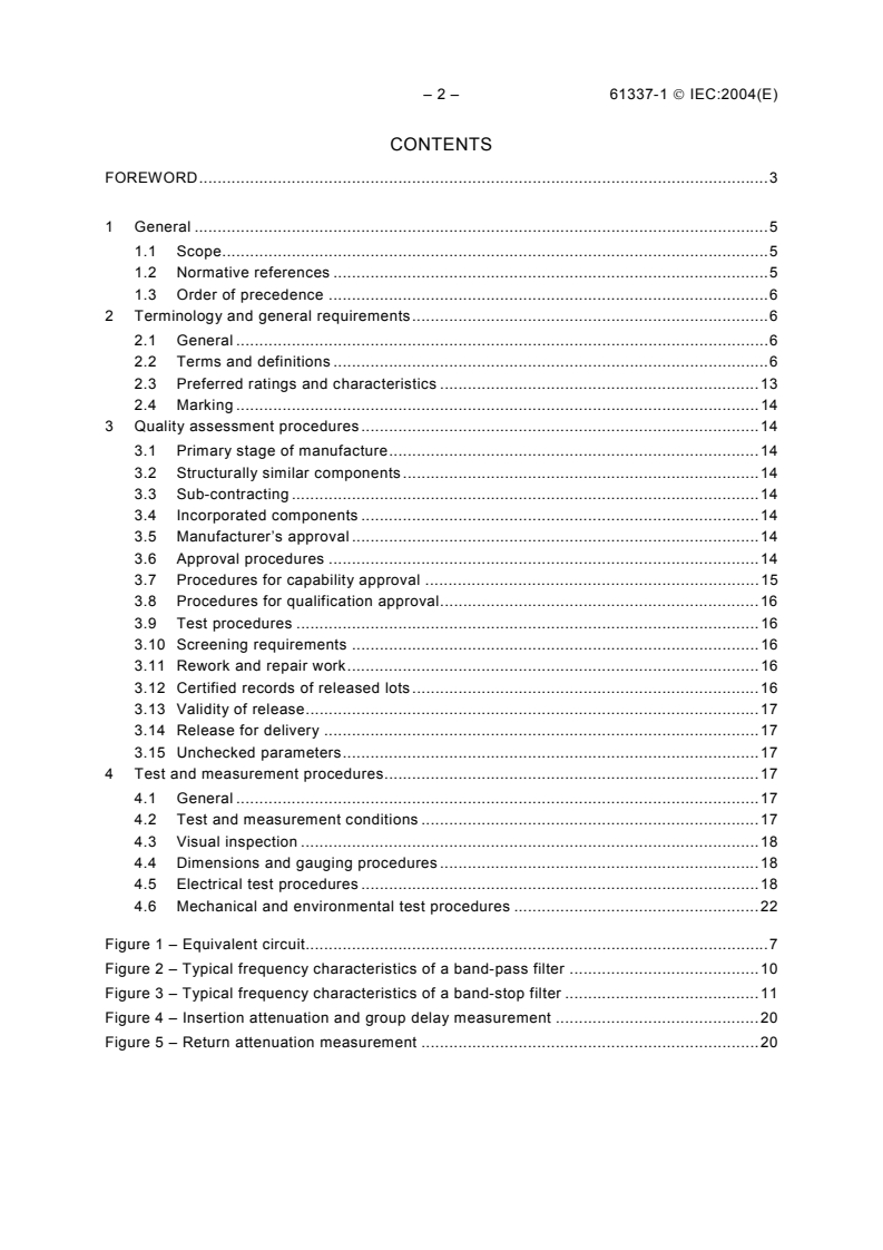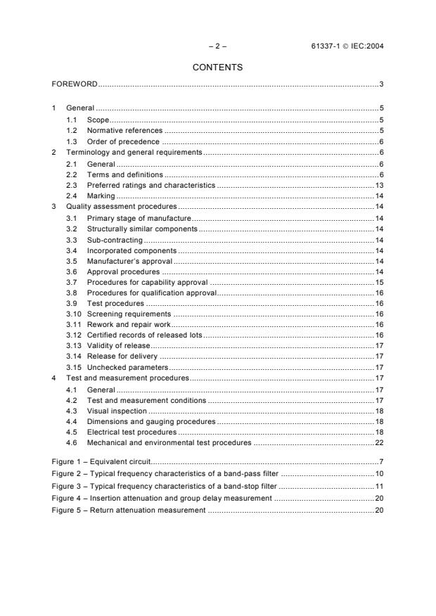 IEC 61337-1:2004 applies to filters using waveguide type dielectric resonators of assessed quality using either capability approval or qualification approval procedures. It also lists the test and measurement procedures which may be selected for use in detail specifications for such filters.