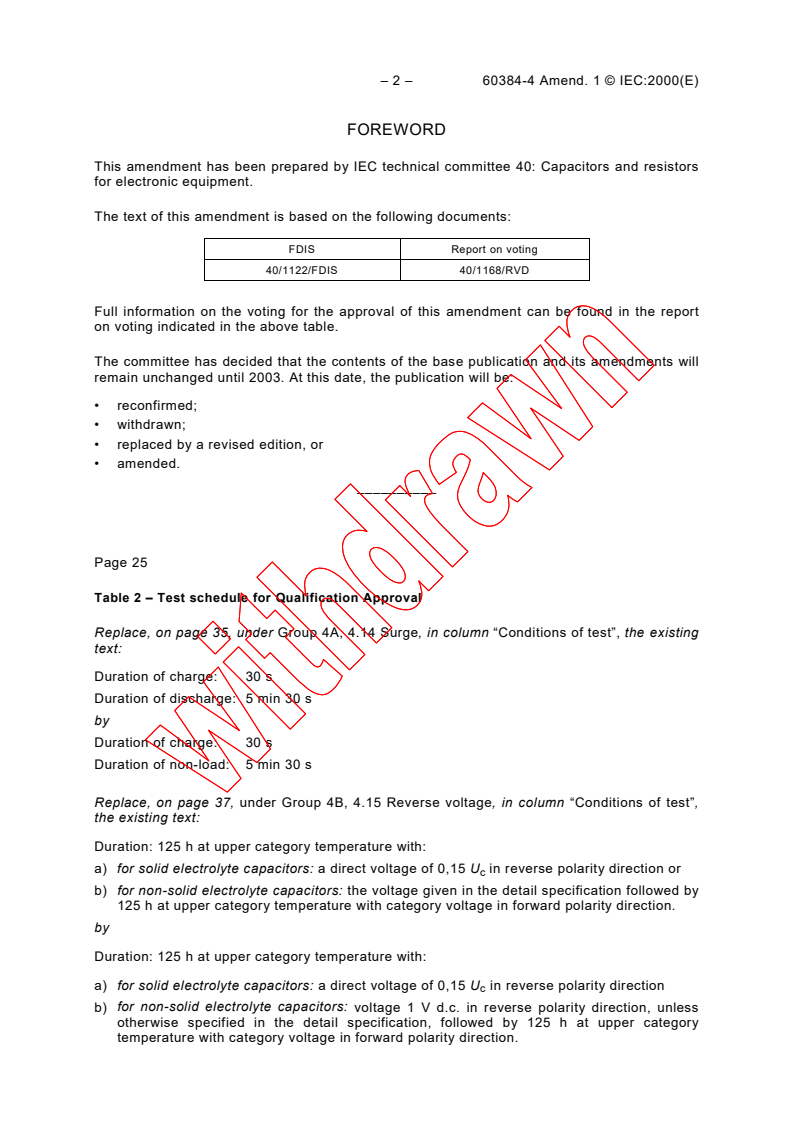 This amendment has been prepared by IEC technical committee 40: Capacitors and resistors