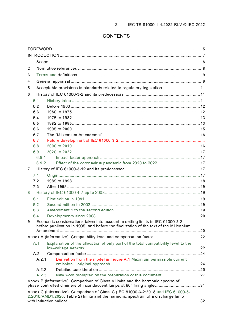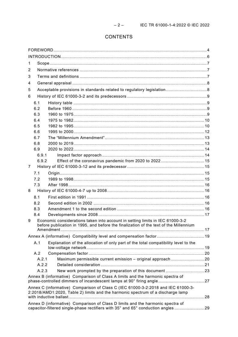 IEC TR 61000-1-4:2022 which is a technical report, reviews the sources and effects of power frequency conducted harmonic current emissions in the frequency range up to 2 kHz on the public electricity supply, and gives an account of the reasoning and calculations leading to the existing emission limits for equipment in the editions of IEC 61000-3-2, up to and including the fifth edition (2018) with Amendment 1 (2020), and in the second edition of IEC 61000-3-12. The history is traced from the first supra-national standard on low-frequency conducted emissions into the public electricity supply, EN 50006:1975 and its evolution through IEC (60)555-2 to IEC 61000-3-2, IEC TR 61000-3-4 and IEC 61000-3-12. To give a full picture of the history, that of the standard for the measuring instrument IEC 61000-4-7 is mentioned as well. NOTE All IEC standards were renumbered starting from 60000 from 1998-01-01. To indicate the references of standards withdrawn before, or not reprinted after, that date, the “60x” prefix is here enclosed in parentheses. Hence “IEC (60)555-2”. Some concepts in this document apply to all low voltage AC systems, but the numerical values apply specifically to the European 230 V;400 V 50 Hz system. This second edition cancels and replaces the first edition published in 2005. This edition constitutes a technical revision. This edition includes the following significant technical changes with respect to the previous edition: