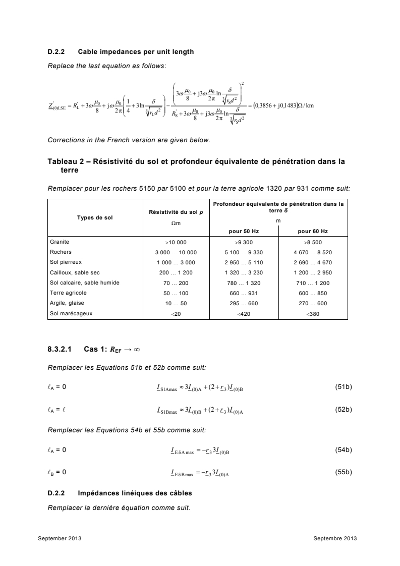 Corrigendum 1 - Courants de court-circuit dans les réseaux triphasés à courant alternatif - Partie 3: Courants durant deux courts-circuits monophasés simultanés séparés à la terre et courants de court-circuit partiels s'écoulant à travers la terre