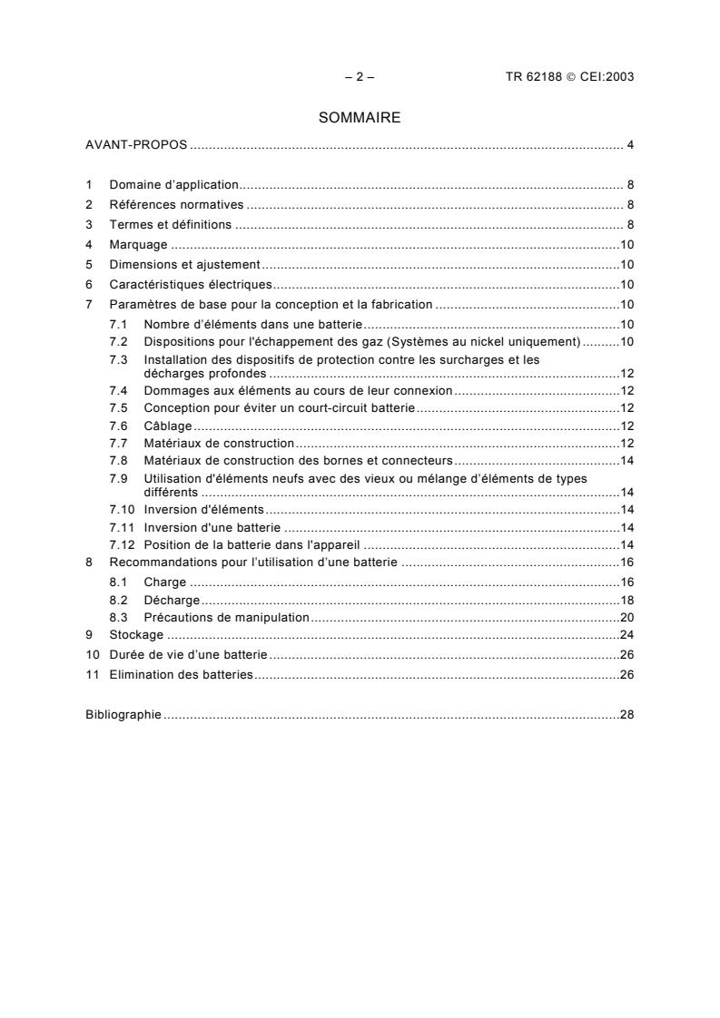 This technical report identifies and recommends procedures to ensure that batteries for portable equipment are designed, manufactured and marketed according to good practice. Written to assist manufacturers of such batteries, (including designers and assemblers), it draws attention to design factors which should be included in a battery design and recommendations on how to get good electrical and life performance from batteries.