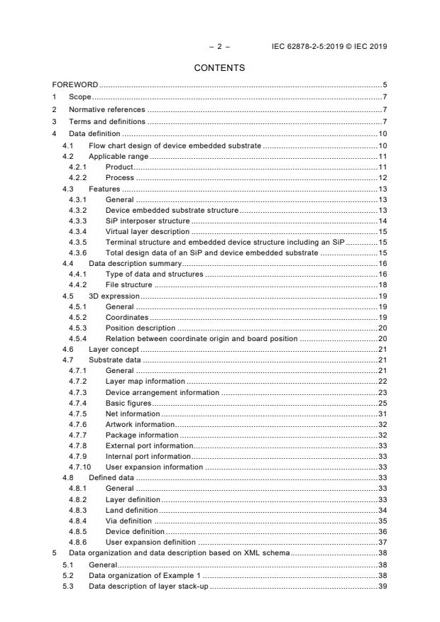 IEC 62878-2-5:2019 specifies requirements based on XML schema that represents a design data format for device embedded substrate, which is a board comprising embedded active and passive devices whose electrical connections are made by means of a via, electroplating, conductive paste or printing of conductive material.