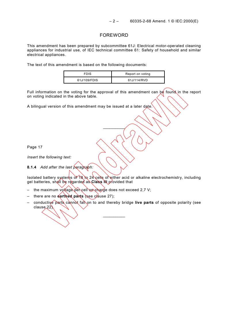 This amendment has been prepared by subcommittee 61J: Electrical motor-operated cleaning