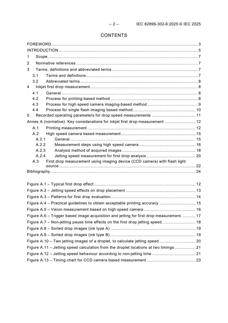 Keywords: IEC 62899-302-6, first drop measurement, inkjet, printed electronics, drop‑on‑demand, piezo inkjet, thermal inkjet, high‑speed camera, CCD strobe, jetting speed, pre‑jetting.