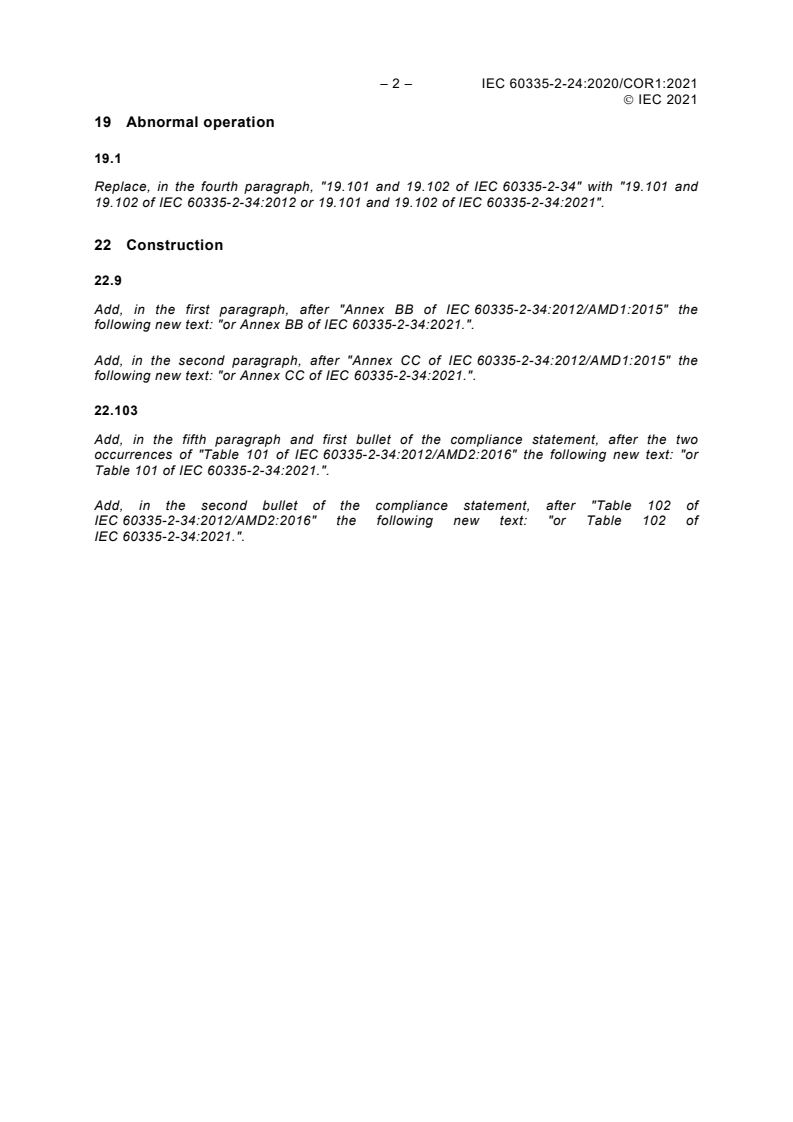 Replace, in the fourth paragraph, "19.101 and 19.102 of IEC 60335-2-34" with "19.101 and