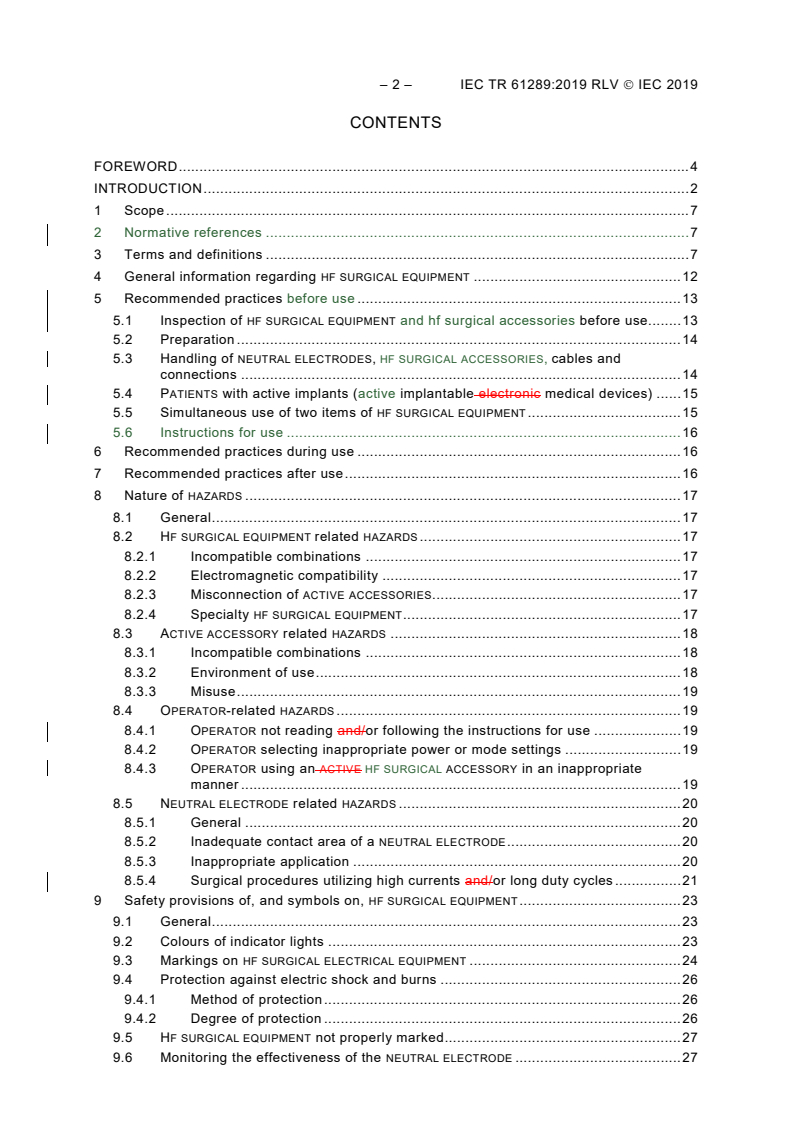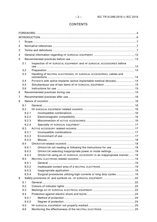 Keywords: IEC TR 61289:2019, high frequency surgical equipment, HF surgical accessories, operation and maintenance, electrosurgery, IEC 60601‑2‑2, neutral electrode, active accessory, preventive maintenance, clinical safety.