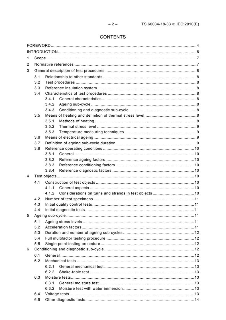 Keywords: IEC TS 60034-18-33:2010, rotating electrical machines, form-wound windings, insulation systems, multifactor evaluation, thermal and electrical stresses, endurance testing, end-point criteria.