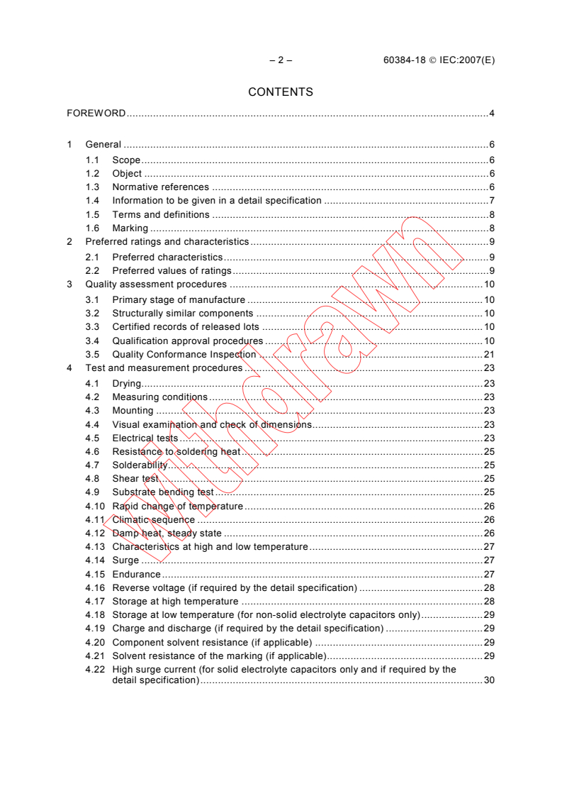 - Test and measurement methods: Includes procedures referenced or derived from IEC 60384-1 and IEC 60068 series. Representative tests in the sectional specification include: