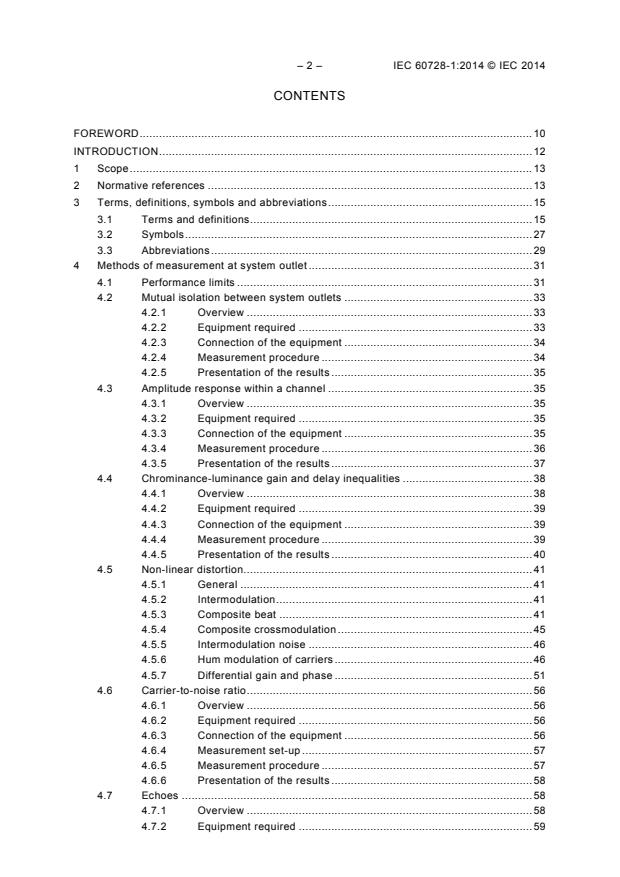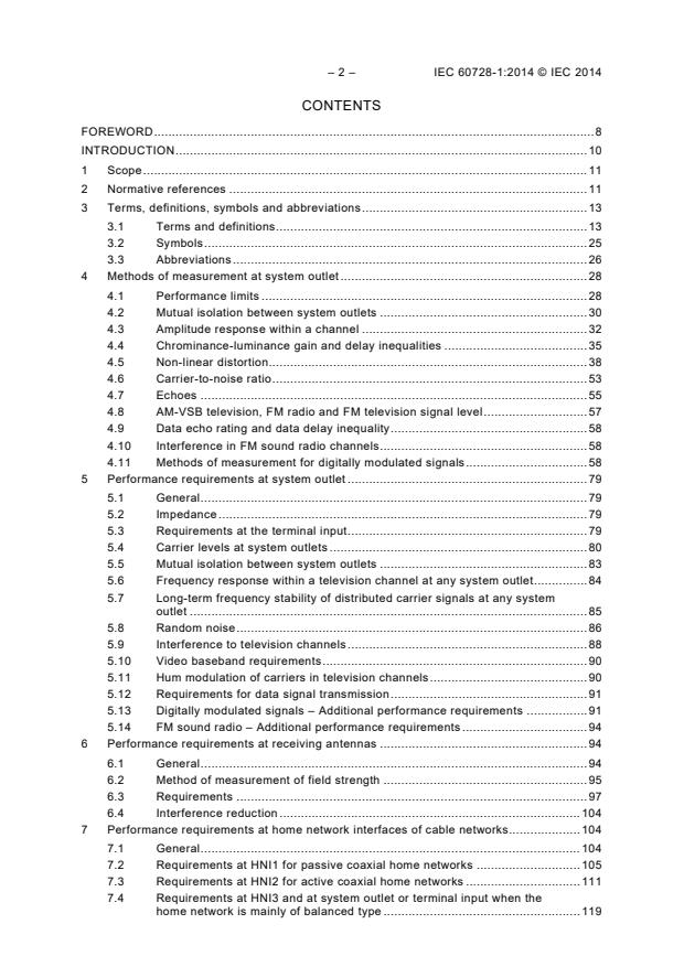 Keywords: IEC 60728-1:2014, cable networks, coaxial, DVB‑T2, system performance, forward path, measurement methods, BER, MER, carrier-to-noise, intermodulation, home network interface.
