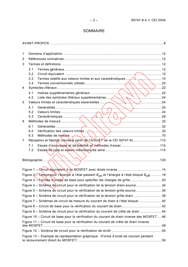 IEC 60747-8-4:2004 is a standard published by the International Electrotechnical Commission (IEC). Its full title is "Discrete semiconductor devices - Part 8-4: Metal-oxide-semiconductor field-effect transistors (MOSFETs) for power switching applications". This standard covers: Gives details for the following categories of metal-oxide semiconductor field-effect transistors (MOSFETs) with inverse diodes: type B depletion (normally on) type and Type C enhancement (normally off) type.