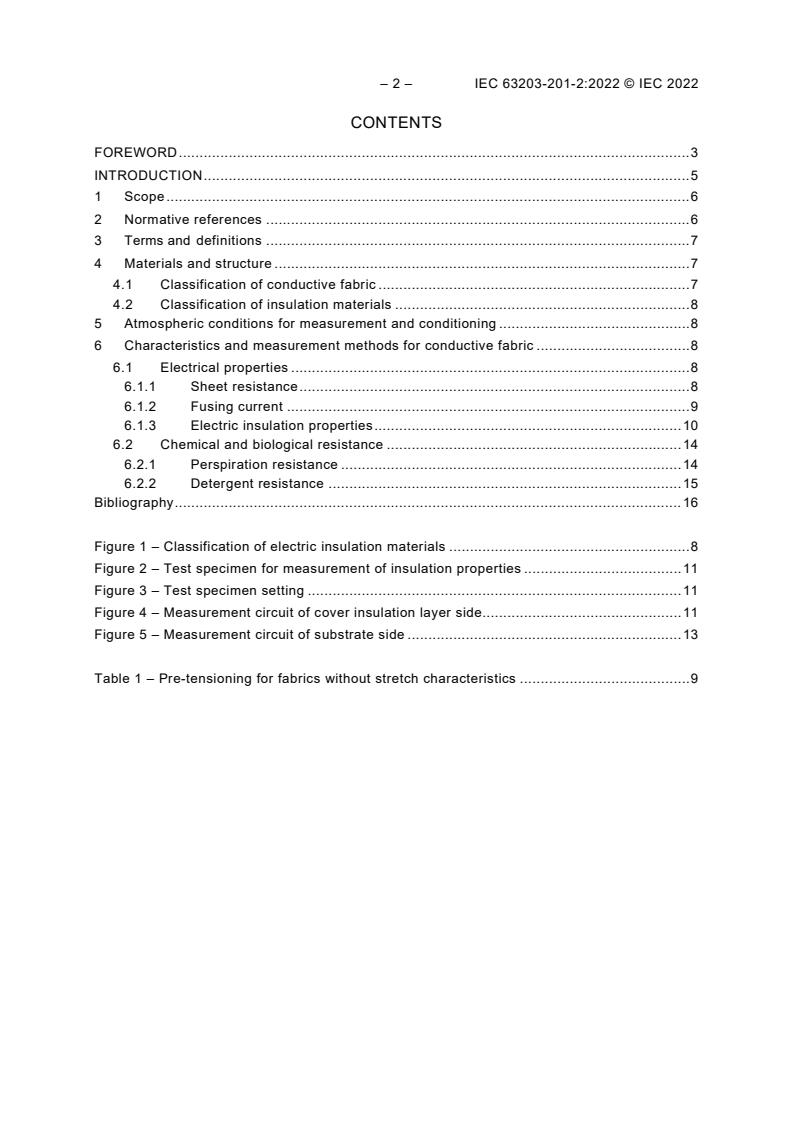 IEC 63203-201-2:2022 specifies the provisions for conductive fabrics and insulation materials used for electronic textiles and measurement methods for their properties.