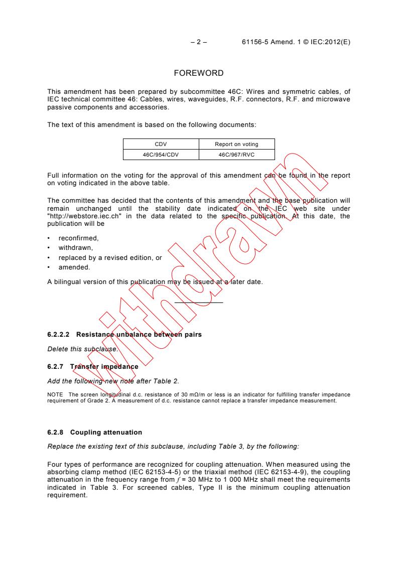 IEC 61156-5:2009/AMD1:2012 - Amendment 1 - Multicore and symmetrical pair/quad cables for digital communications - Part 5: Symmetrical pair/quad cables with transmission characteristics up to 1 000 MHz - Horizontal floor wiring - Sectional specification Released:12/11/2012