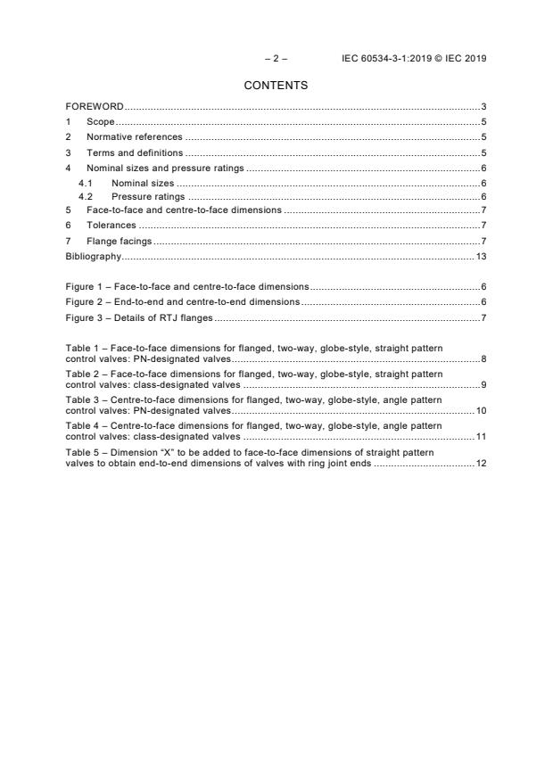IEC 60534-3-1:2019 is a standard published by the International Electrotechnical Commission (IEC). Its full title is "Industrial-process control valves - Part 3-1: Dimensions - Face-to-face dimensions for flanged, two-way, globe-type, straight pattern and centre-to-face dimensions for flanged, two-way, globe-type, angle pattern control valves". This standard covers: IEC 60534-3-1:2019 specifies face-to-face (FTF) and centre-to-face (CTF) dimensions for given nominal sizes and pressure ratings of flanged, two-way, globe-type, straight pattern and angle pattern control valves This second edition cancels and replaces the first edition published in 2000. This edition constitutes a technical revision. This edition includes the following significant technical changes with respect to the previous edition: a) This standard has been extended to cover face-to-face dimensions and centre-to-face dimensions for control valves PN 160 and PN 250 (Class 900 and 1500) b) Definitions of end-to-end dimensions and centre-to-end dimensions have been added for valves with flange facings where the gasket contact surfaces are not located at the extreme ends of the valve c) Table 5 of adjustment value "X" for end-to-end dimensions of straight pattern valves with ring joint ends has been added d) ANSI/ISA references have been added in Tables 1 to 4 e) ANSI/ISA references have been added in the bibliography