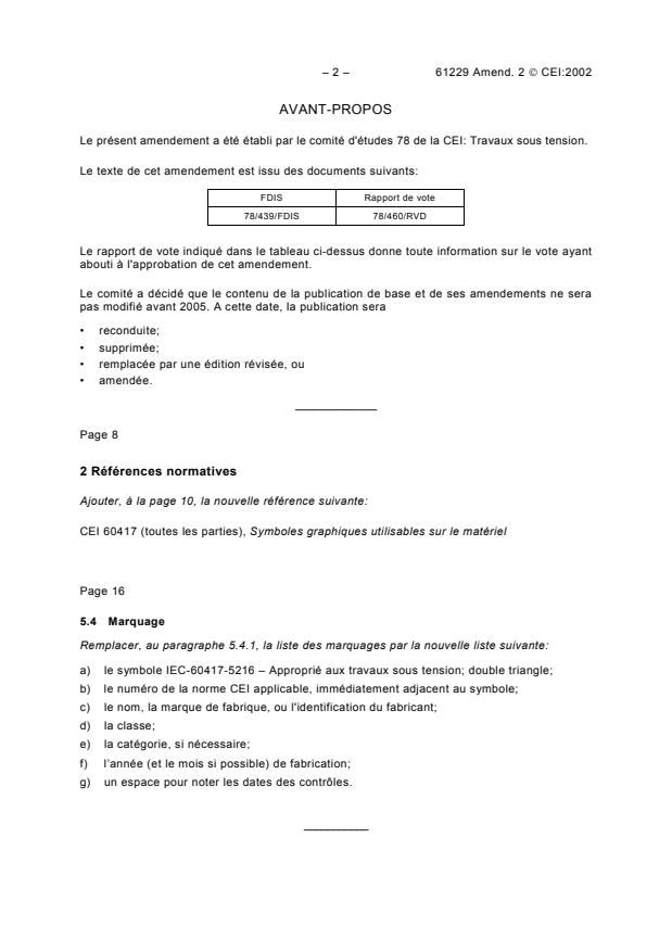 Amendement 2 - Protecteurs rigides pour travaux sous tension sur des installations à courant alternatif