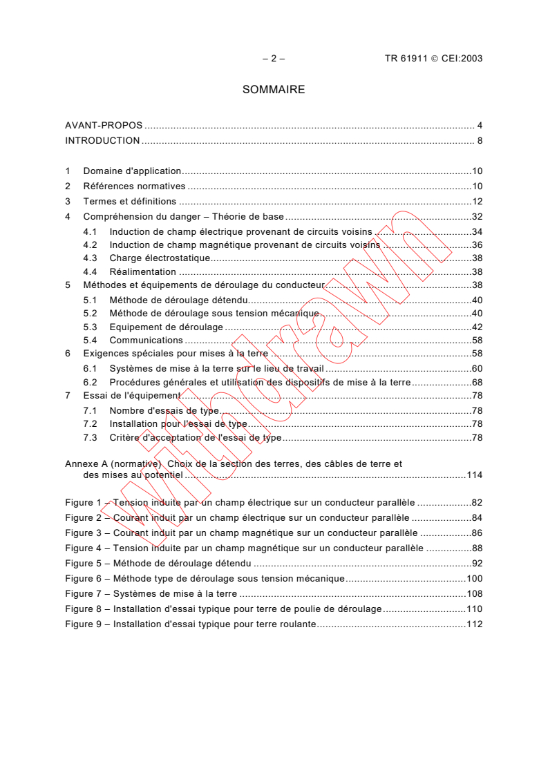 Ce Rapport Technique fournit des recommandations pour le choix et l'essai, lorsque cela est nécessaire, de matériels de déroulage et accessoires utilisés pour l'installation de conducteurs nus et isolés de lignes aériennes de distribution. Des procédures sont recommandées pour une mise à la terre adéquate afin de protéger l'équipement, les composants et le personnel des courants pouvant résulter de contacts accidentels avec des conducteurs sous tension voisins, ou d'une tension induite par des lignes sous tension adjacentes, de coups de foudre, d'erreurs de manuvre ou d'une charge électrostatique. L'équipement à l'étude dans ce Rapport Technique est utilisé pour des tensions de distribution, généralement considérées comme étant inférieures à 50 kV. Cependant, pour des tensions supérieures ou égales à 50 kV, l'emploi de la CEI 61328 peut être plus approprié. Le choix entre la CEI 61328 et le présent Rapport Technique pour les travaux considérés dépendra généralement de la taille physique des conducteurs, de la taille des structures et de la distance moyenne entre les supports.