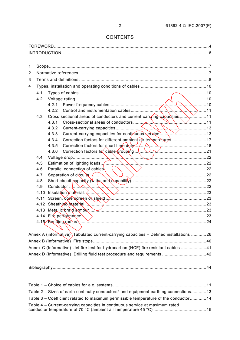 Keywords: IEC 61892-4:2007, offshore cable standards, electrical cable installation, current-carrying capacity, fire performance, offshore power cables.