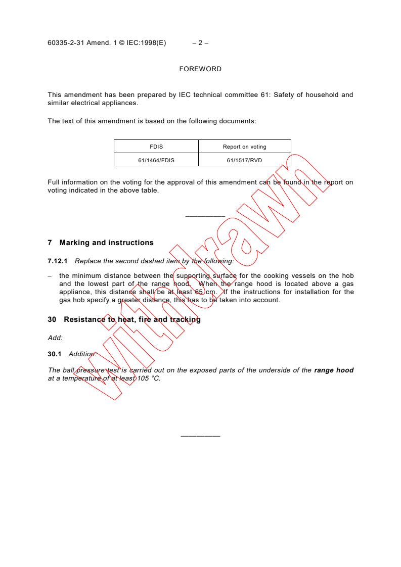 IEC 60335-2-31:1995/AMD1:1998 - Amendment 1 - Safety of household and similar electrical appliances - Part 2: Particular requirements for range hoods Released:10/16/1998 Isbn:2831845211