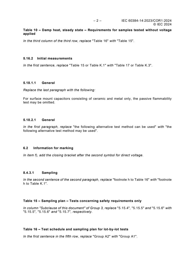 IEC 60384-14:2023/COR1:2024 - Corrigendum 1 - Fixed capacitors for use in electronic equipment - Part 14: Sectional specification - Fixed capacitors for electromagnetic interference suppression and connection to the supply mains Released:17. 10. 2024