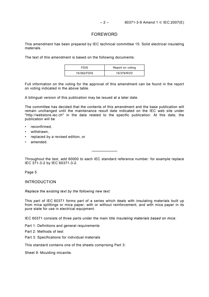 This amendment has been prepared by IEC technical committee 15: Solid electrical insulating