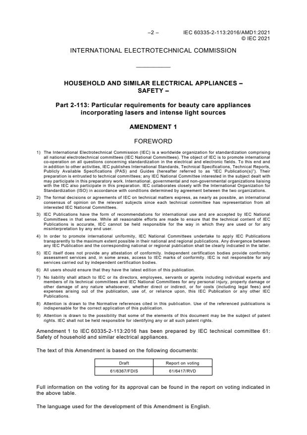 (Amendment)Amendment 1 - Household and similar electrical appliances - Safety - Part 2-113: Particular requirements for beauty care appliances incorporating lasers and intense light sources