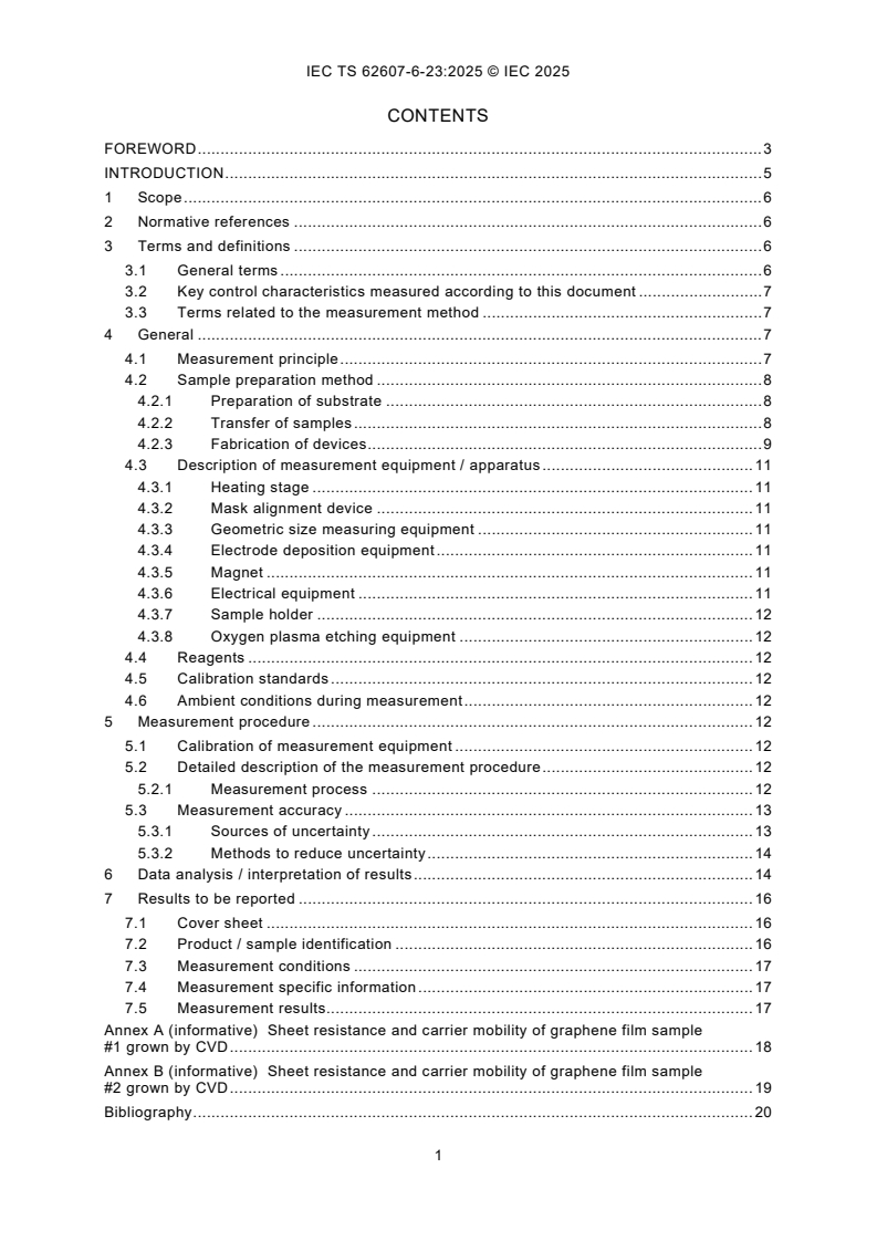 Keywords: IEC TS 62607-6-23:2025, graphene, Hall bar method, sheet resistance, carrier mobility, carrier density, nanomanufacturing, key control characteristics, Hall measurement, graphene thin films.