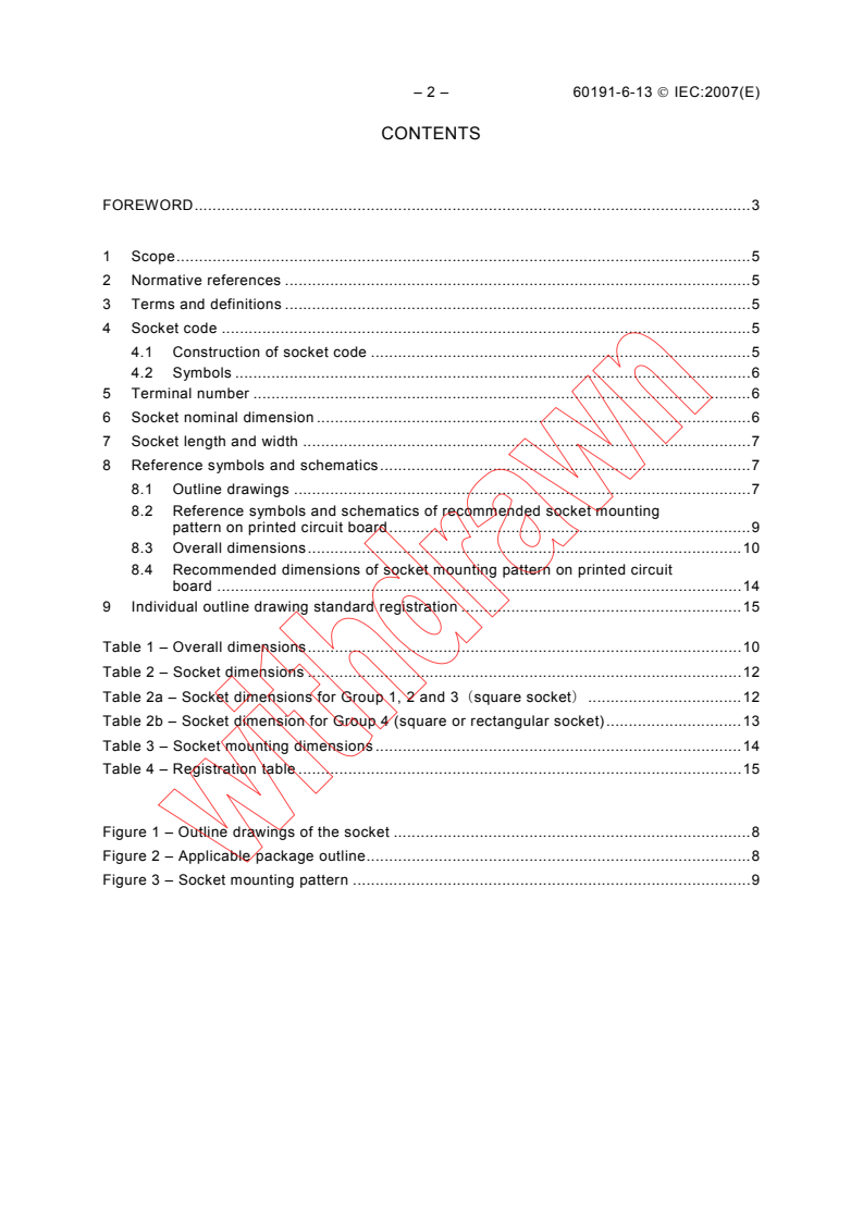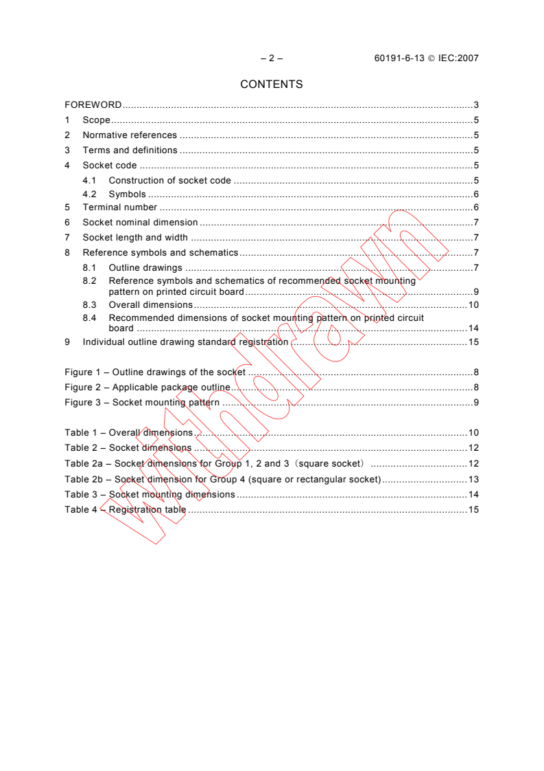 - Registration and outline drawing tables: Overall dimensions, socket dimensions and registration tables (Tables and Figures included in the standard).