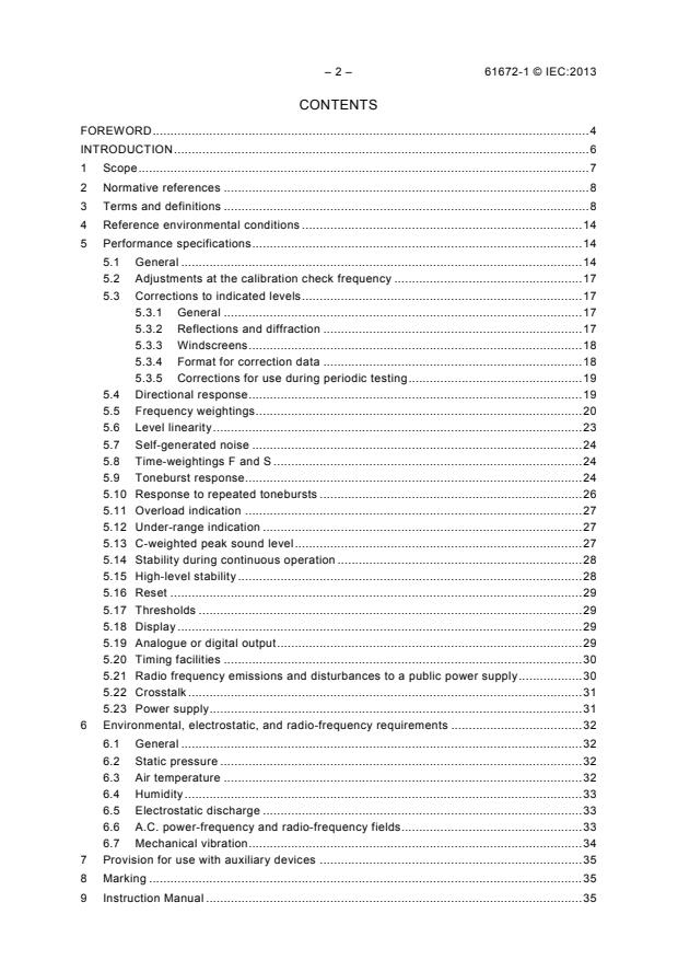 IEC 61672-1:2013 is a standard published by the International Electrotechnical Commission (IEC). Its full title is "Electroacoustics - Sound level meters - Part 1: Specifications". This standard covers: IEC 61672-1:2013 gives electroacoustical performance specifications for three kinds of sound measuring instruments: - time-weighting sound level meters that measure exponential-time-weighted, frequency-weighted sound levels; - integrating-averaging sound level meters that measure time-averaged, frequency-weighted sound levels; and - integrating sound level meters that measure frequency-weighted sound exposure levels. Sound level meters specified in this standard are intended to measure sounds generally in the range of human hearing. Two performance categories, class 1 and class 2, are specified in this standard. Acceptance limits for class 2 are greater than, or equal to, those for class 1. This standard is applicable to a range of designs for sound level meters. A sound level meter may be a self-contained hand-held instrument with an attached microphone and a built-in display device. A sound level meter may be comprised of separate components in one or more enclosures and may be capable of displaying a variety of acoustical signal levels. Sound level meters may include extensive analogue or digital signal processing, separately or in combination, with multiple analogue and digital outputs. Sound level meters may include general-purpose computers, recorders, printers, and other devices that form a necessary part of the complete instrument. Sound level meters may be designed for use with an operator present or for automatic and continuous measurements of sound level without an operator present. Specifications in this standard for the response to sound waves apply without an operator present in the sound field. This second edition cancels and replaces the first edition published in 2002. It constitutes a technical revision. In this second edition, conformance to specifications is demonstrated when measured deviations from design goals do not exceed the applicable acceptance limits, and when the uncertainty of measurement does not exceed the corresponding maximum-permitted uncertainty, with both uncertainties determined for a coverage probability of 95 %.