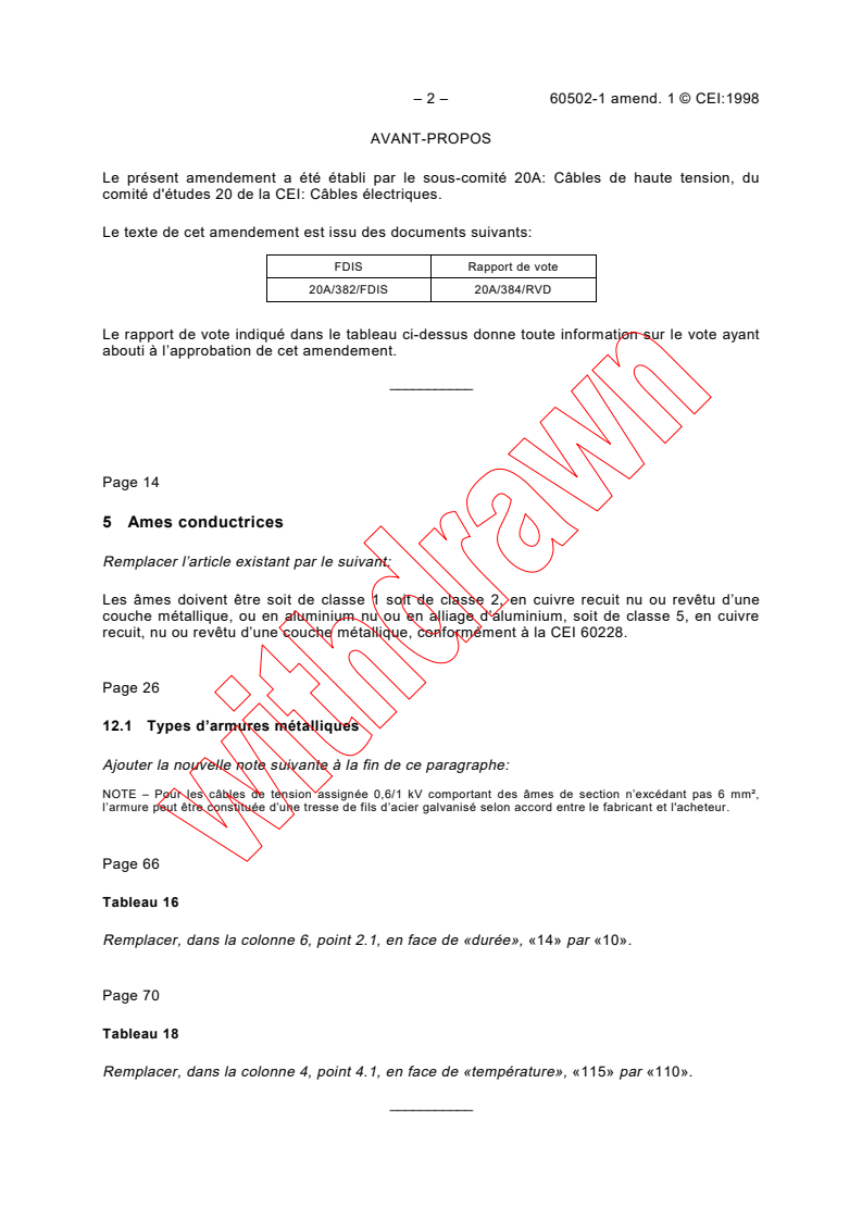 Le présent amendement a été établi par le sous-comité 20A: Câbles de haute tension, du
