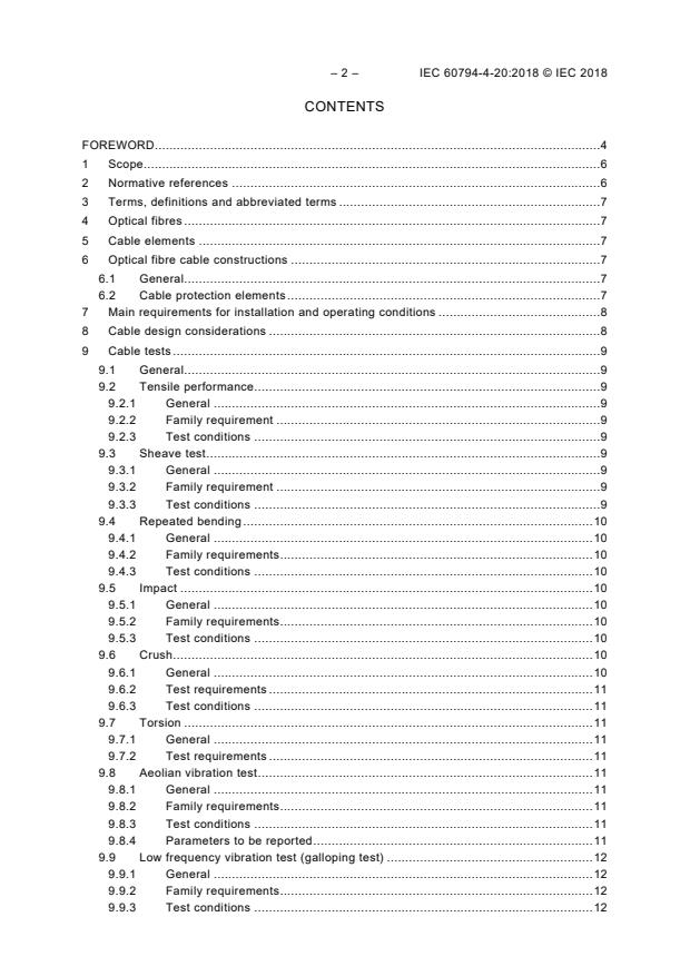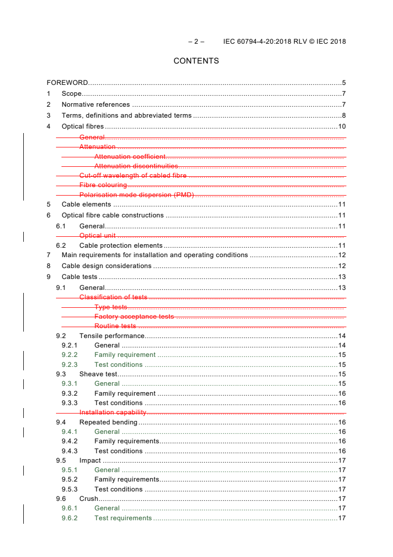 - 2018 revision highlights: Edition 2.0 streamlines cross-references to IEC 60794-1-1, IEC 60794-4 and IEC 60794-1-2, removes the MICE table and an example test in Annex C, and updates the creep test method.
