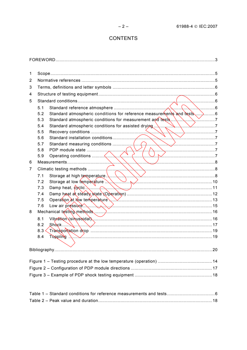 IEC 61988-4:2007 is a standard published by the International Electrotechnical Commission (IEC). Its full title is "Plasma display panels - Part 4: Climatic and mechanical testing methods". This standard covers: Defines test methods for evaluating environmental and mechanical endurance characteristics of plasma display modules (PDP modules).