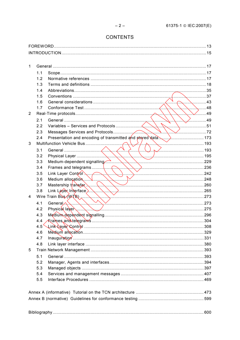 IEC 61375-1:2007 is a standard published by the International Electrotechnical Commission (IEC). Its full title is "Electric railway equipment - Train bus - Part 1: Train communication network". This standard covers: Applies to data communication in open trains, that is covers data communication between vehicles of the said open trains and data communication within the vehicles of the said open trains. Allows for interoperability of individual vehicles within open trains in international traffic. May also be applicable to closed trains and multiple unit trains when so agreed between purchaser and supplier. This edition includes the following significant technical changes with respect to the previous edition: technical amendments in clauses 2, 3 and 4 where some inconsistencies were removed.