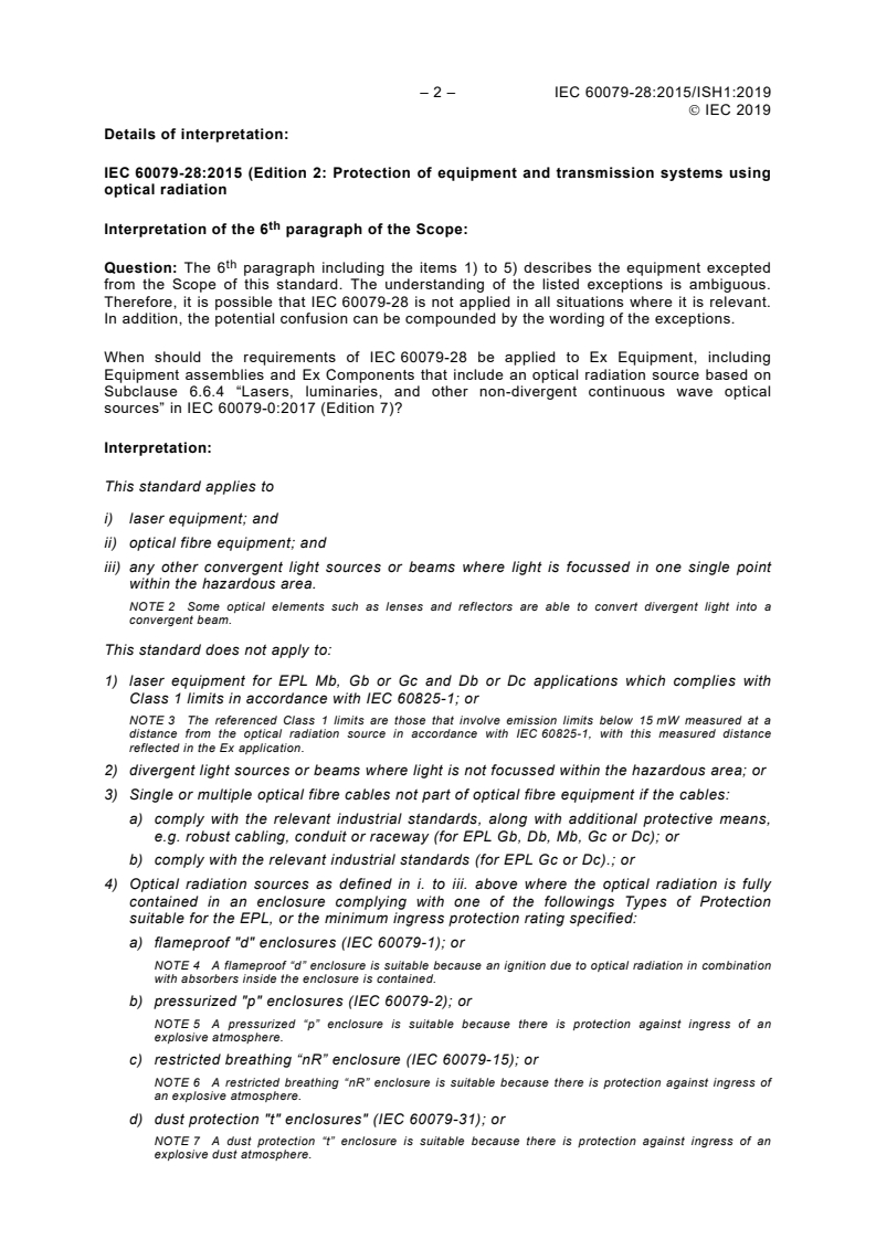 Interpretation sheet to the 6 paragraph of the Scope of IEC 60079-28:2015 (Edition 2)