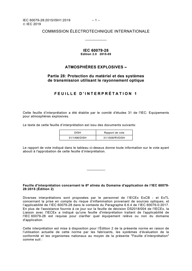 – 2 – IEC 60079-28:2015/ISH1:2019
