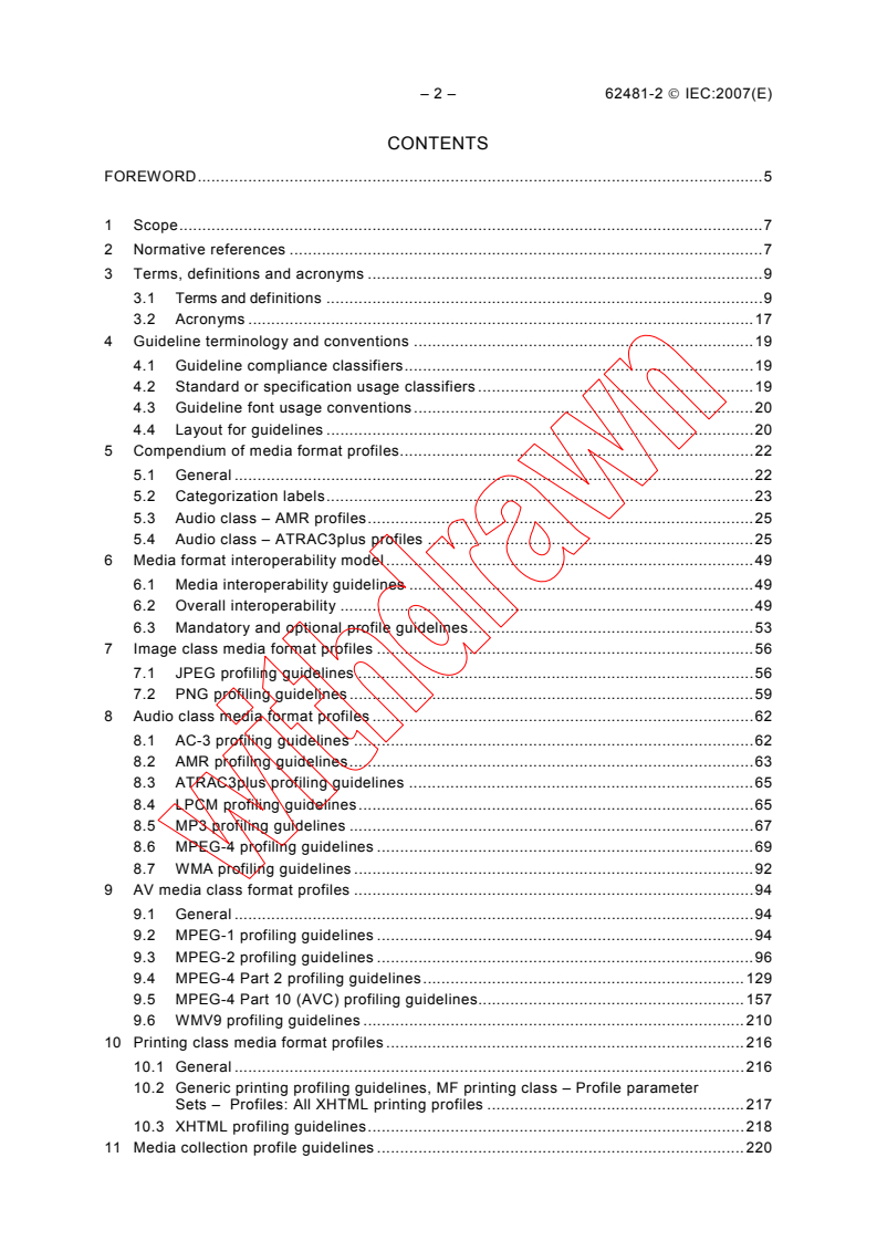 IEC 62481-2:2007 is the IEC adoption of the Digital Living Network Alliance (DLNA) guidelines that define media format profiles for home networked device interoperability. It complements IEC 62481-1 by specifying the DLNA media format profiles for the audio, image and AV (audio/video) media classes and introduces profile ID values for media collections and printer XHTML documents. The standard is intended to ensure predictable media playback, rendering and printing behavior across DLNA-capable devices on home networks.