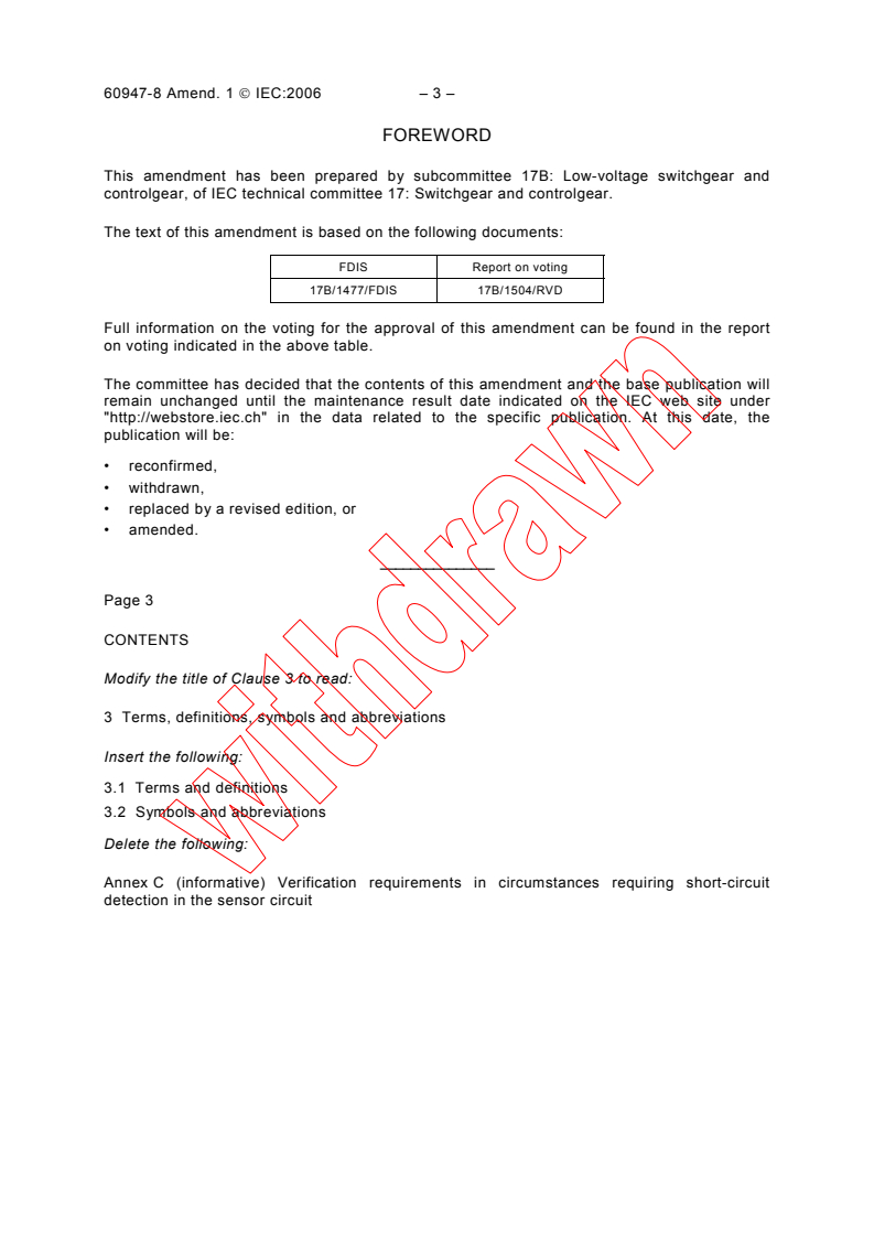 60947-8 Amend. 1 IEC:2006 – 3 –