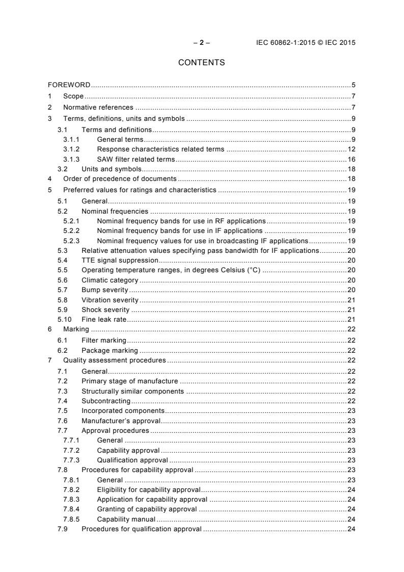 IEC 60862-1:2015 specifies the methods of test and general requirements for SAW filters of assessed quality using either capability approval or qualification approval procedures. This edition includes the following significant technical changes with respect to the previous edition: