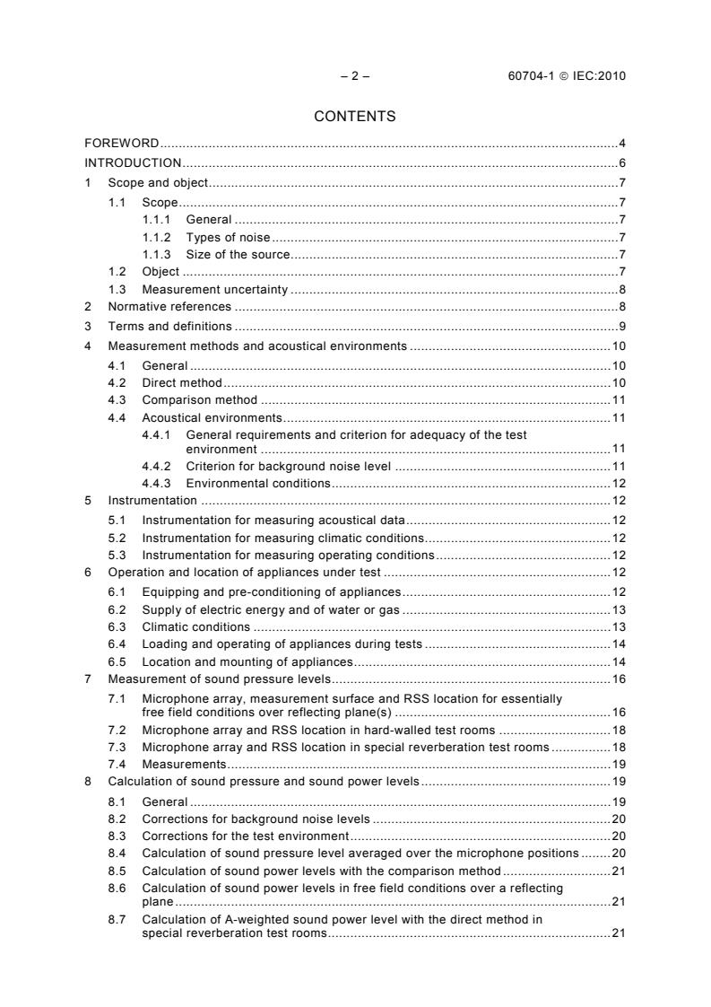 IEC 60704-1:2010 applies to electric appliances (including their accessories or components) for household and similar use, supplied from mains or from batteries. By similar use is understood to be the use in similar conditions as in households, for example in inns, coffee-houses, tea-rooms, hotels, barber or hairdresser shops, launderettes, etc., if not otherwise specified in part 2. The principal changes in this edition as compared to the previous edition are as follows: includes a description of an appropriate test enclosure for appliances to be built in.