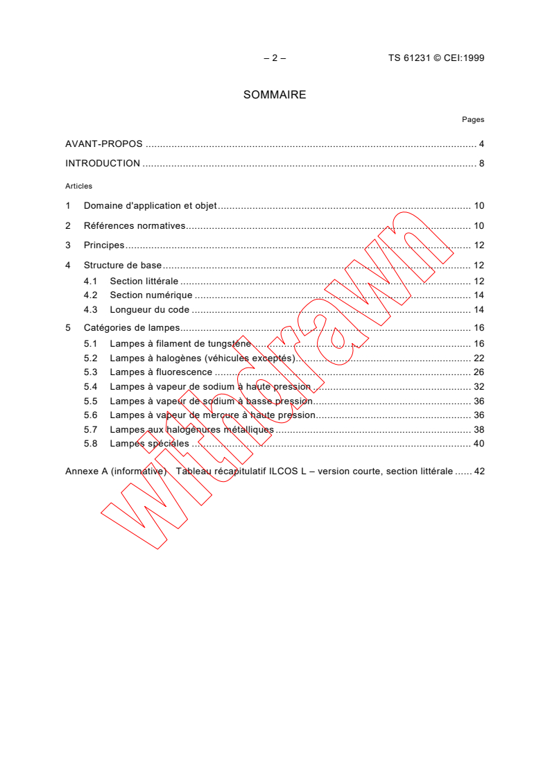 IEC TS 61231:1999 is a technical specification published by the International Electrotechnical Commission (IEC). Its full title is "International lamp coding system (ILCOS)". This standard covers: Covers all lamp categories. Coding for the main lamp types is specified. Has the status of a technical specification.