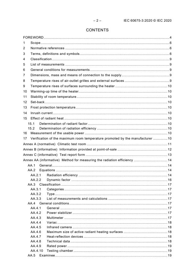 IEC 60675-3:2020 is a standard published by the International Electrotechnical Commission (IEC). Its full title is "Household electric direct-acting room heaters - Methods for measuring performance - Part 3: Additional provisions for the measurement of the radiation efficiency". This standard covers: IEC 60675-3:2020 applies to electric direct-acting room heaters. This document defines performance characteristics related to the radiant effect and specifies methods for measuring the radiation efficiency for the information of users. This document is used to measure the radiation efficiency of direct-acting room heaters. This International Standard is to be used in conjunction with IEC 60675:1994, IEC 60675:1994/AMD1:1998 and IEC 60675:1994/AMD2:2018.