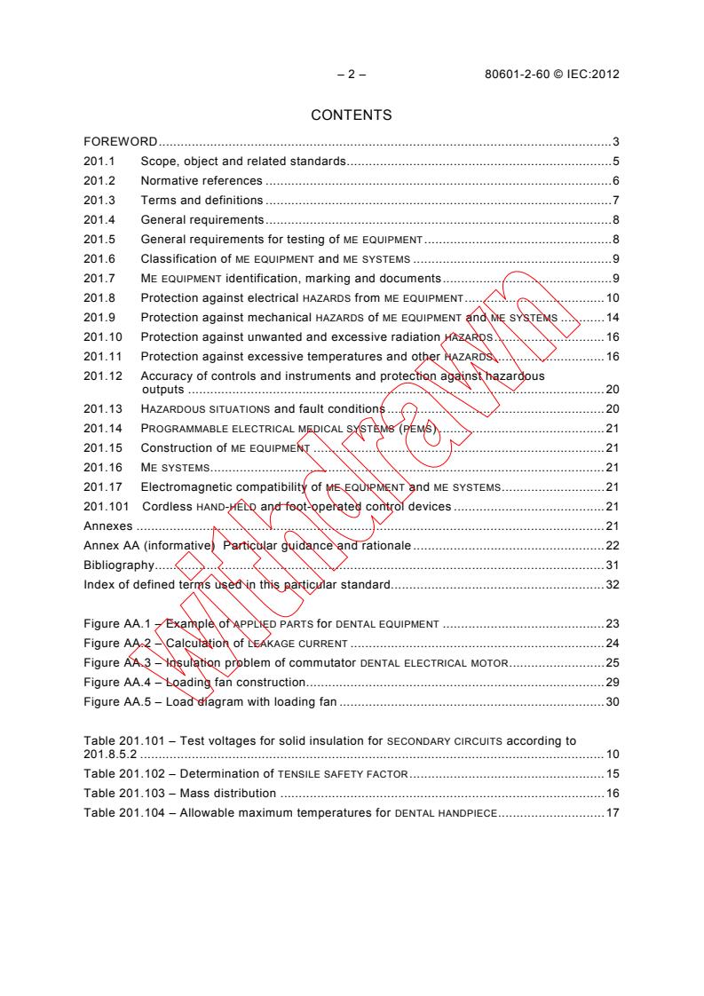 IEC 80601-2-60:2012 is a standard published by the International Electrotechnical Commission (IEC). Its full title is "Medical electrical equipment - Part 2-60: Particular requirements for the basic safety and essential performance of dental equipment". This standard covers: IEC 80601-2-60:2012 applies to the basic safety and essential performance of Dental Units, Dental Patient Chairs, Dental Handpieces and Dental Operating Lights. Excluded are amalgamators, sterilizers and dental X-ray equipment.