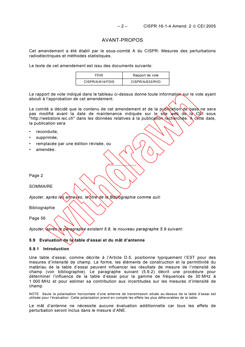 Cet amendement a été établi par le sous-comité A du CISPR: Mesures des perturbations