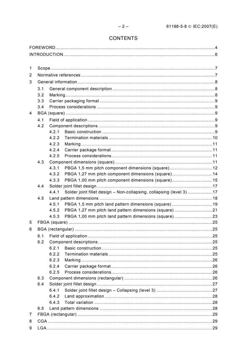 Keywords: IEC 61188-5-8, land pattern, BGA, FBGA, CGA, LGA, solder joint, surface mount, reflow soldering, area array, NSMD, lead-free.
