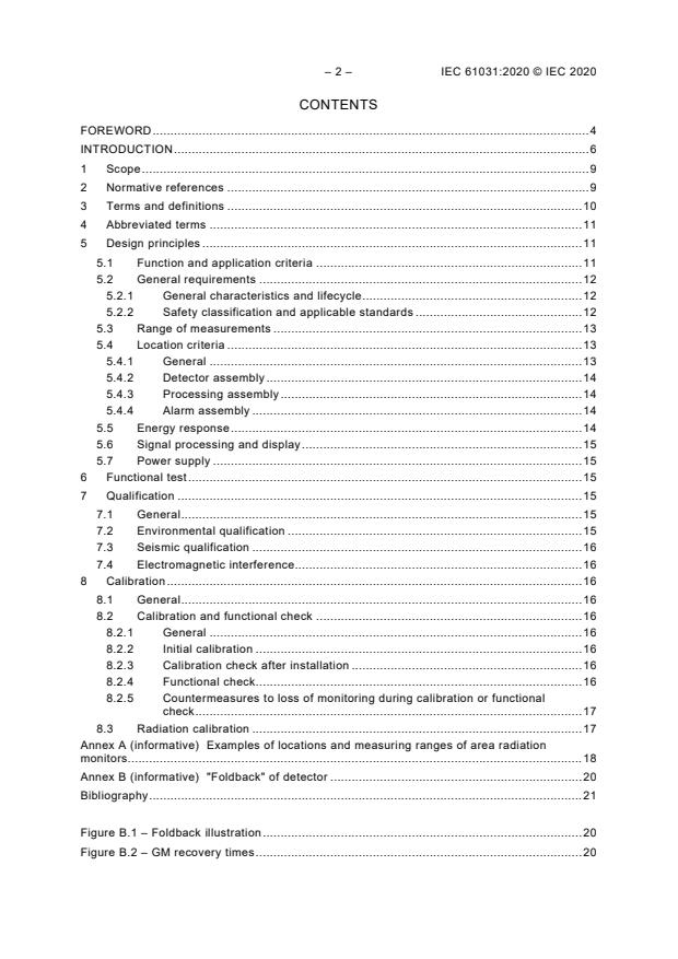 IEC 61031:2020 applies to the design, location and application of installed equipment for monitoring local gamma radiation dose rates within nuclear facilities during normal operation and anticipated operational occurrences. High range area gamma radiation dose rate monitoring equipment for accident conditions currently addressed by IEC 60951-1 and IEC 60951-3 is not within the scope of this document. This document does not apply to the measurement of neutron dose rate. Additional equipment for neutron monitoring may be required, depending on the plant design, if the neutron dose rate makes a substantial contribution to the total dose equivalent to personnel.