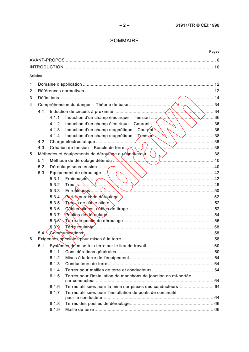 IEC TS 61911:1998 is a technical specification issued by the International Electrotechnical Commission (IEC) focused on safe and effective live working practices during the installation of overhead distribution line conductors. This standard provides comprehensive recommendations for the selection, testing, and use of stringing equipment and accessory items essential in the installation of both bare and insulated conductors. Particularly, it addresses the critical safety aspects related to earthing procedures that protect equipment, components, and personnel from electrical hazards caused by accidental contact with energized conductors or induced voltages from nearby energized lines, lightning, switching errors, and electrostatic charging.