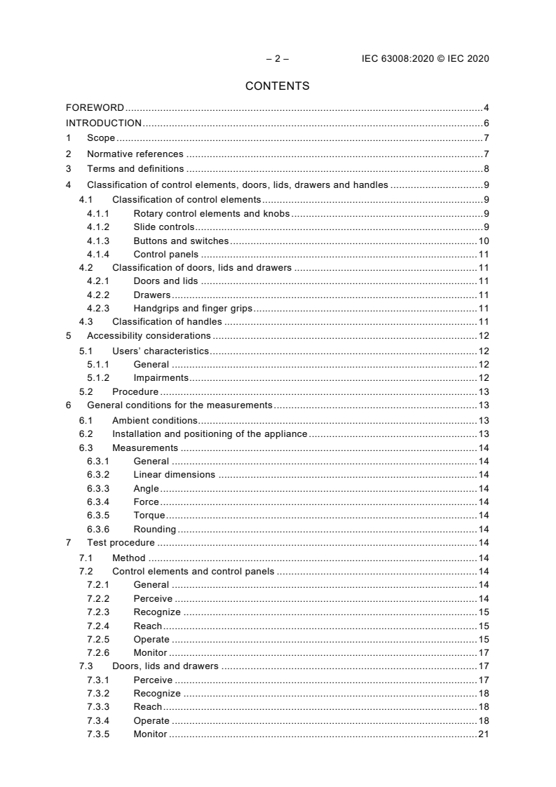 Keywords: IEC 63008:2020, accessibility standard, household appliances, control elements, knobs, buttons, doors, handles, older persons, persons with disabilities, accessible design, usability, test methods, inclusive design, electrical appliances accessibility, IEC standards.