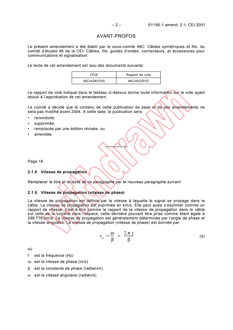 IEC 61156-1:1994/AMD2:2001