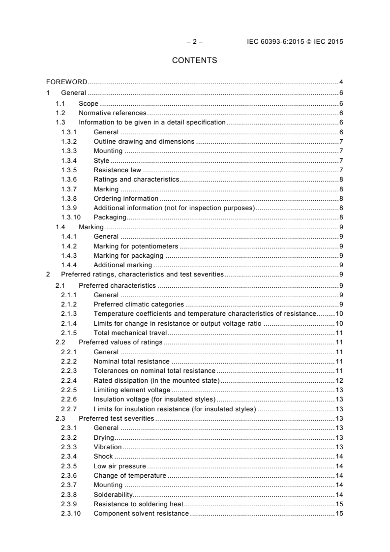 IEC 60393-6:2015 is an international standard published by the International Electrotechnical Commission (IEC) that specifies requirements for surface mount preset potentiometers used in electronic equipment. As Part 6 of the IEC 60393 series, this standard defines preferred ratings, characteristics, quality assessment procedures, and testing methods to ensure consistent performance and reliability of these components. It serves as a sectional specification aligned with the general provisions in IEC 60393-1:2008.